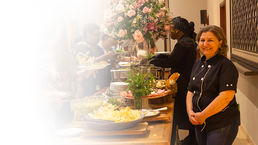 A profissional à frente do Buffet Memorável é especialista em alimentos, com conhecimentos que se estendem da qualidade e fabricação aos valores nutricionais, gerenciamento, tendências e inovações da alta gastronomia. E não é à toa.